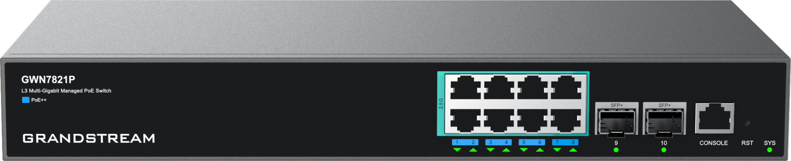 Grandstream GWN7821P Layer 3,8x 2.5G RJ45 PoE++ 240W, 2x SFP+