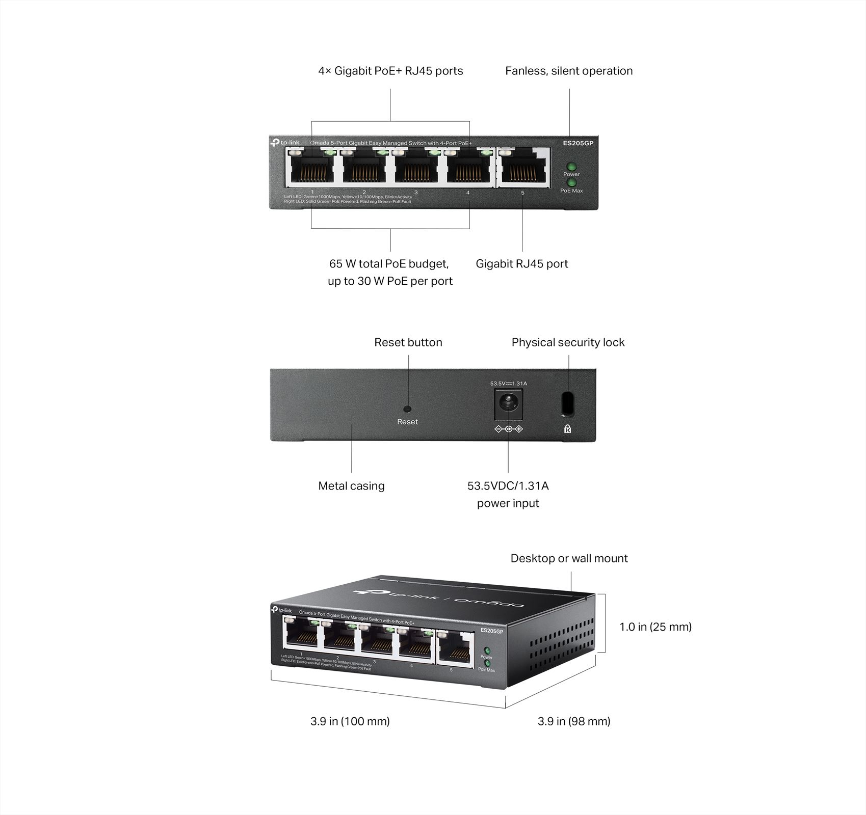 TP-Link ES205GP,Omada 5-Port Gb Easy Managed Switch, 4-Port PoE+ 65W