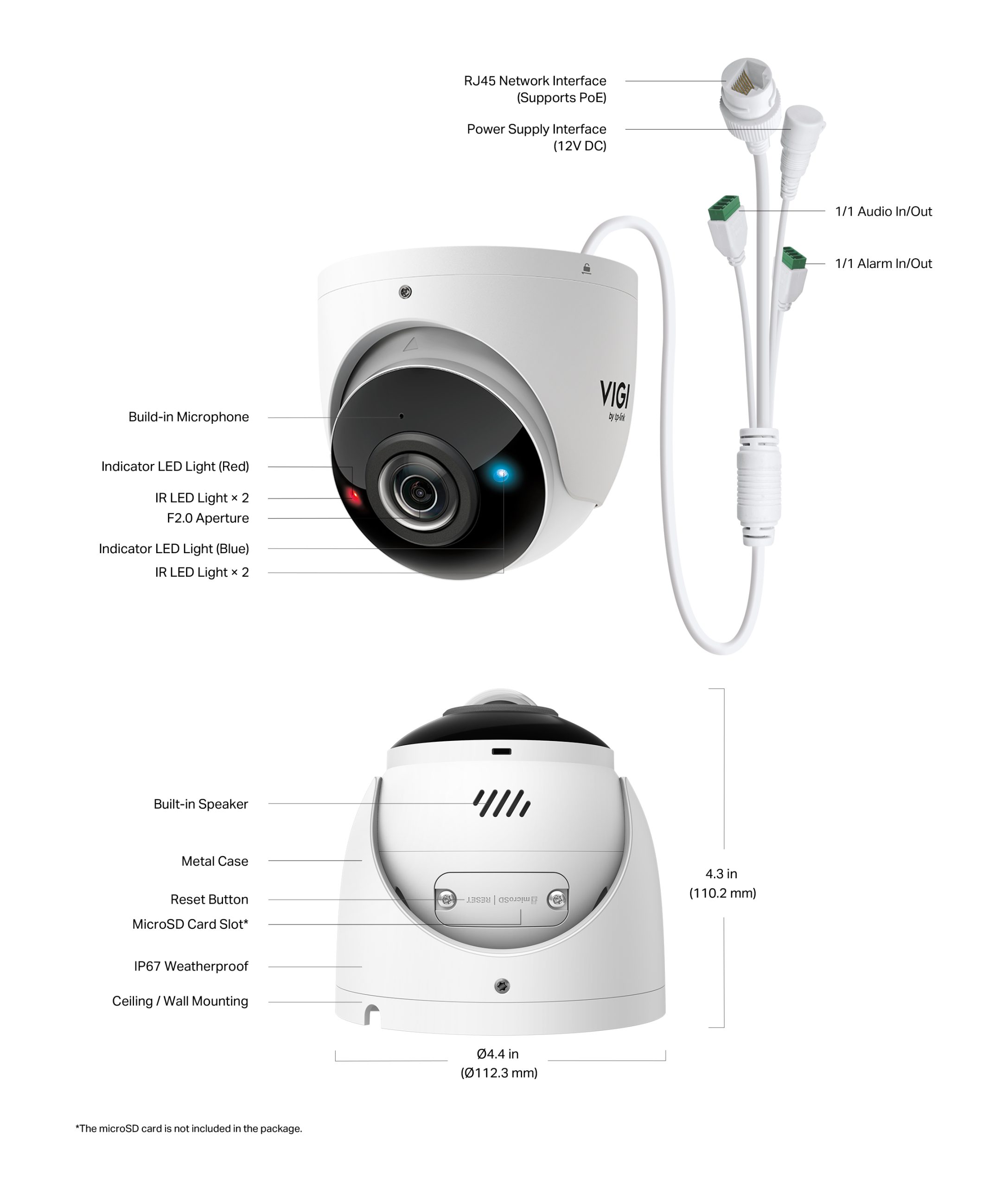 TP-Link InSight S485PI,Vigi 8MP IP67 Turret, 180° horizontale beeldhoek