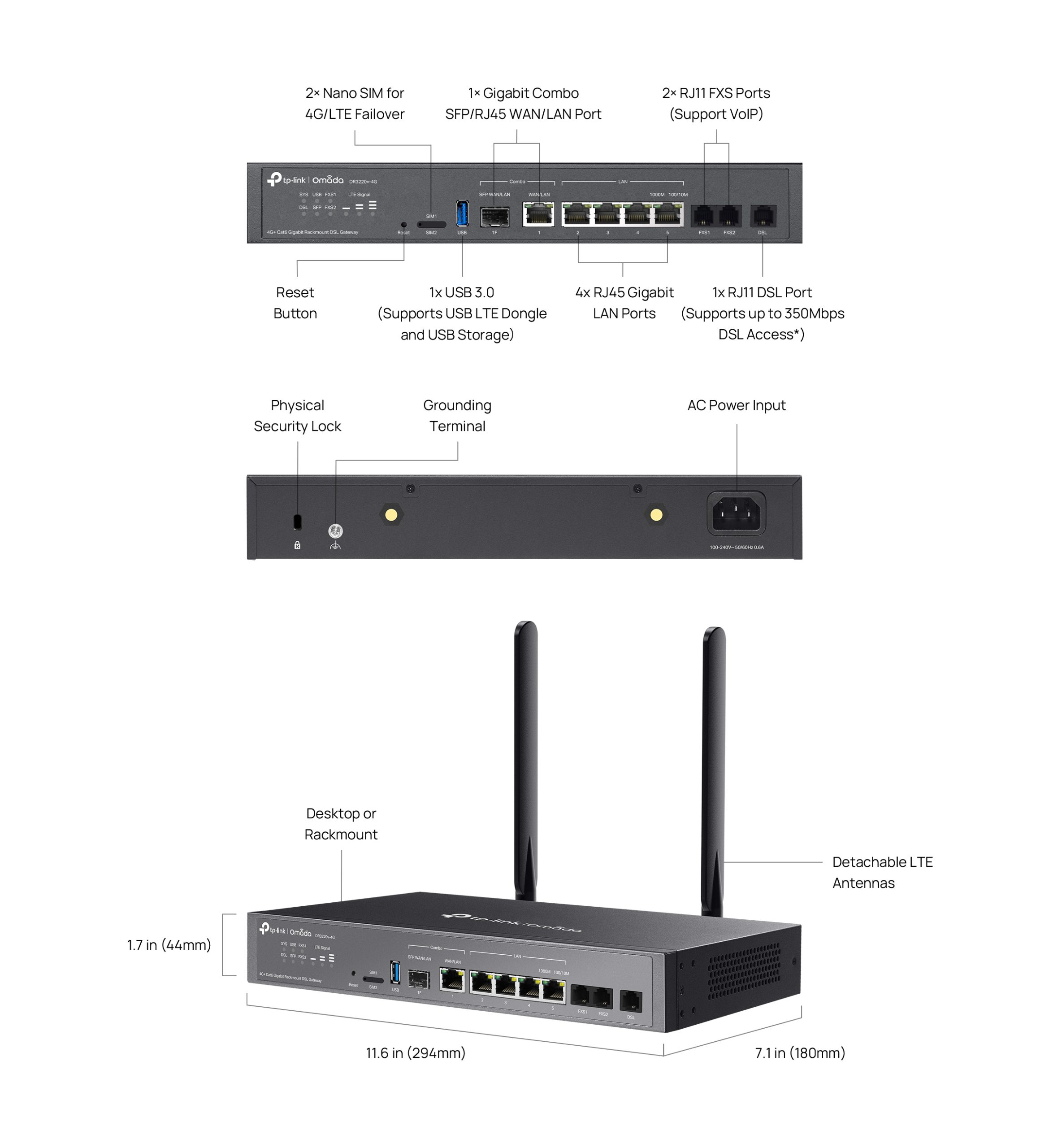TP-Link Omada DR3220v-4G,AX3000 Wi-Fi 6 Gigabit DSL Gateway