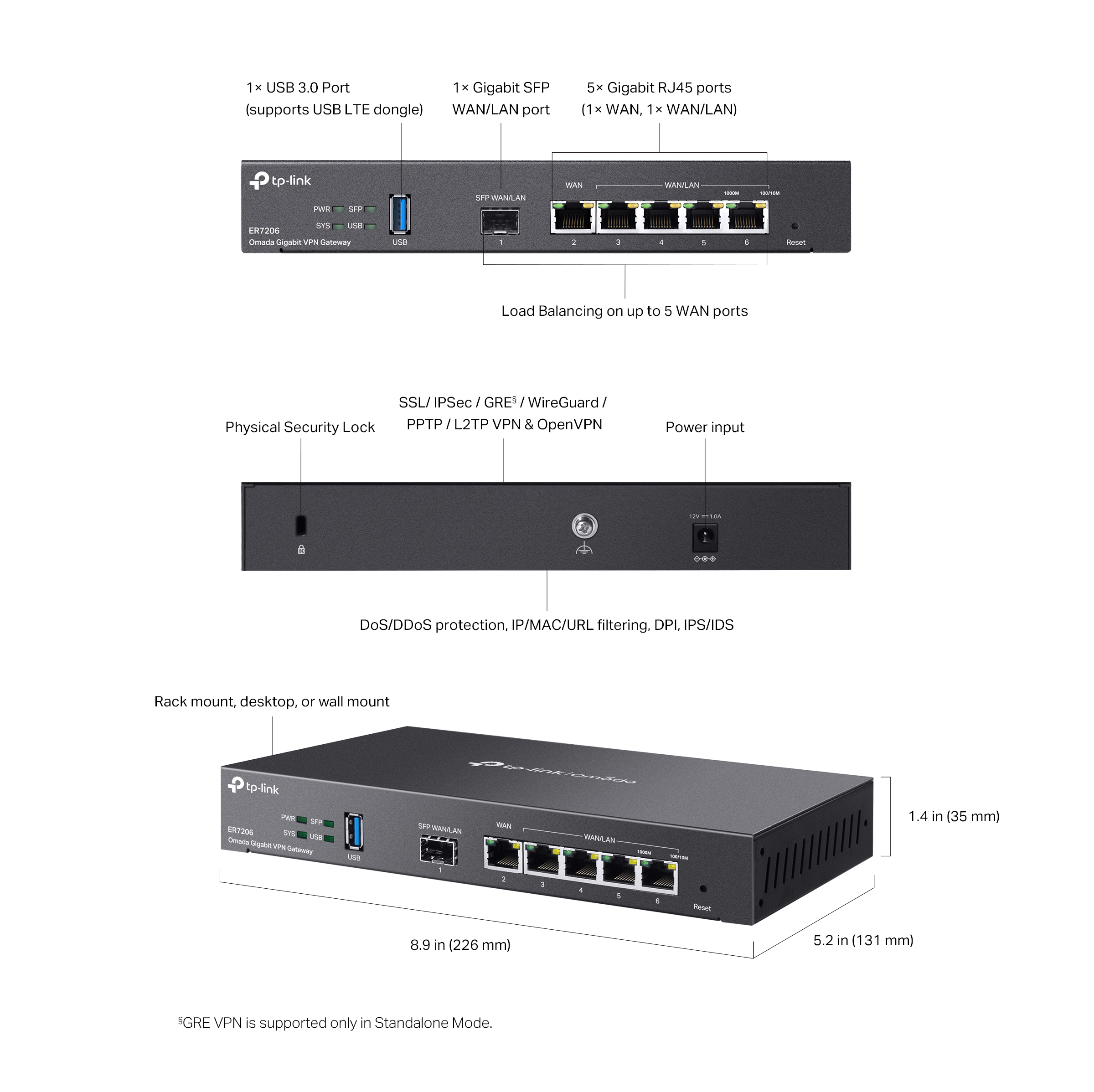TP-Link Omada ER7206 VPN router,Gb Multi-WAN VPN Security Router